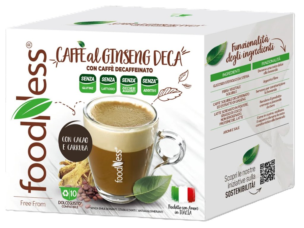 Café décaféiné au ginseng FoodNess pour Dolce Gusto, 10 capsules