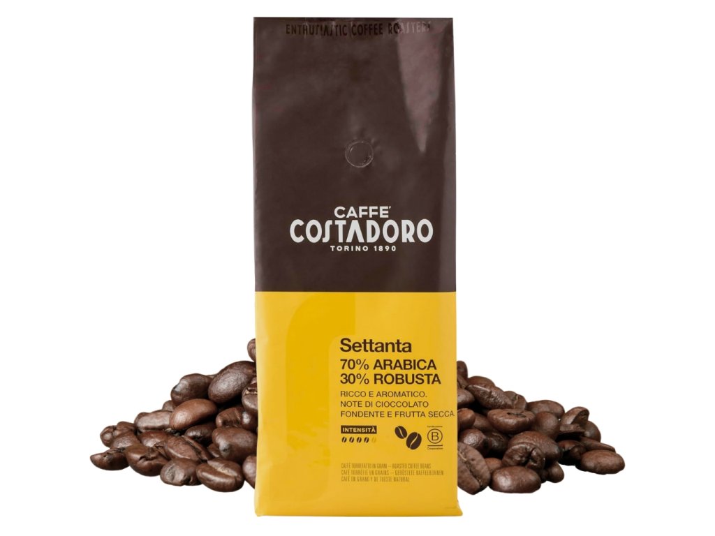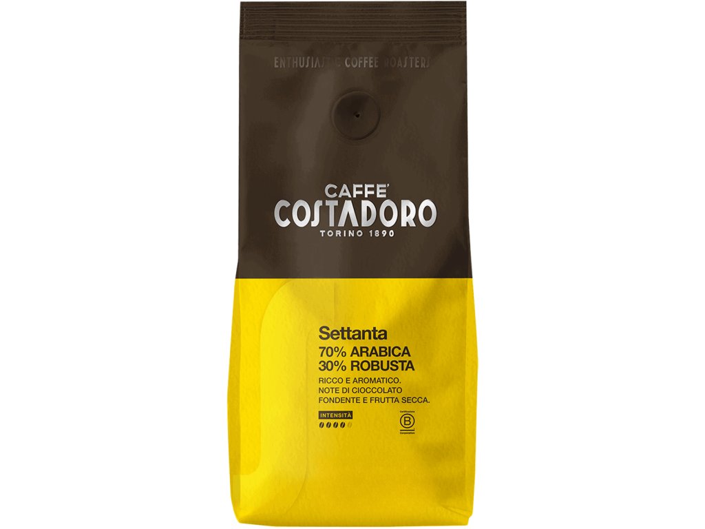 Ce nouveau mélange Costadoro est composé de 70% d'Arabica et de 30% de Robusta rare, lui conférant une saveur riche et aromatique avec des notes de chocolat noir et de fruits secs.