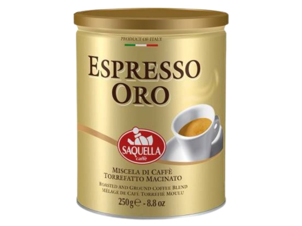 Café moulu Saquella Espresso Oro en boîte de 250 g