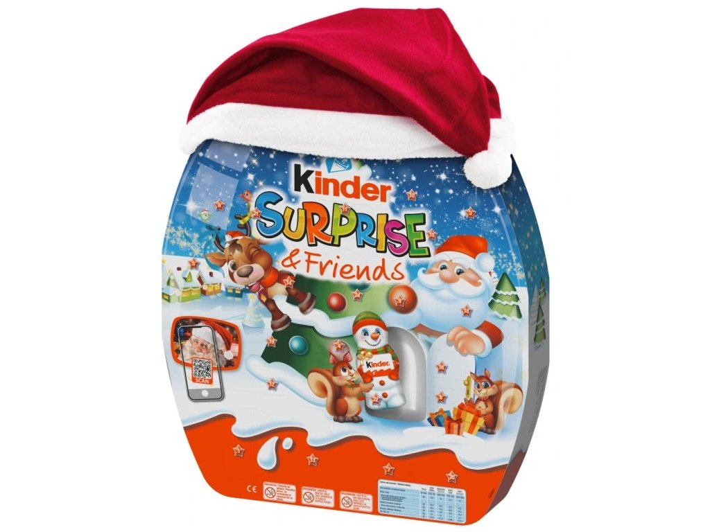 Le calendrier de l'Avent Kinder Surprise & Friends regorge de surprises chocolatées. L'atmosphère d'attente de Noël est couronnée par le chapeau d'elfe fourni avec un calendrier, qui grâce à son bord flexible s'adapte aux têtes d'elfes de toutes tailles.