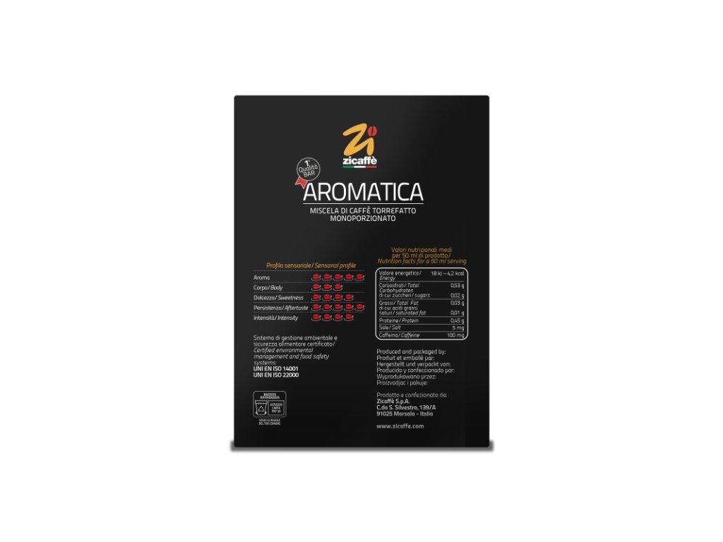 Aromatica est un mélange de grains Arabica de la plus haute qualité, combinés avec des espèces de Robusta sélectionnées.