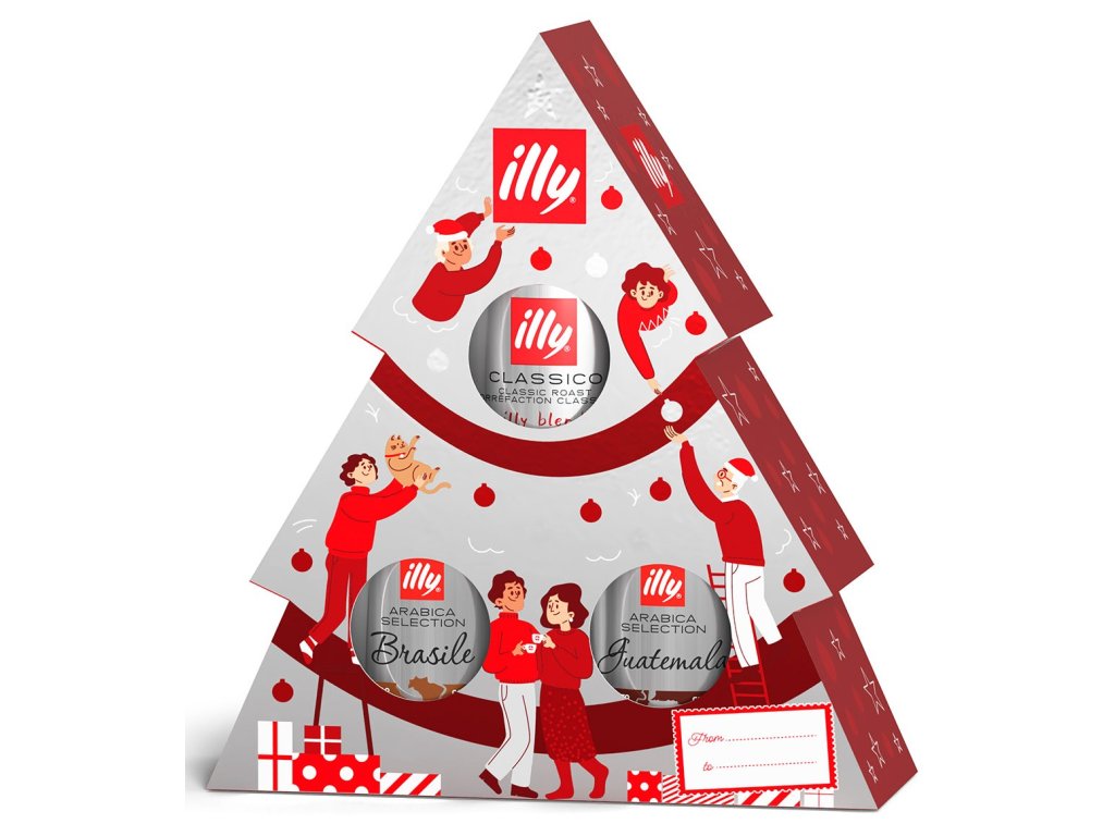 Coffret cadeau Illy sapin de Noël, café moulu 3 x 125 g