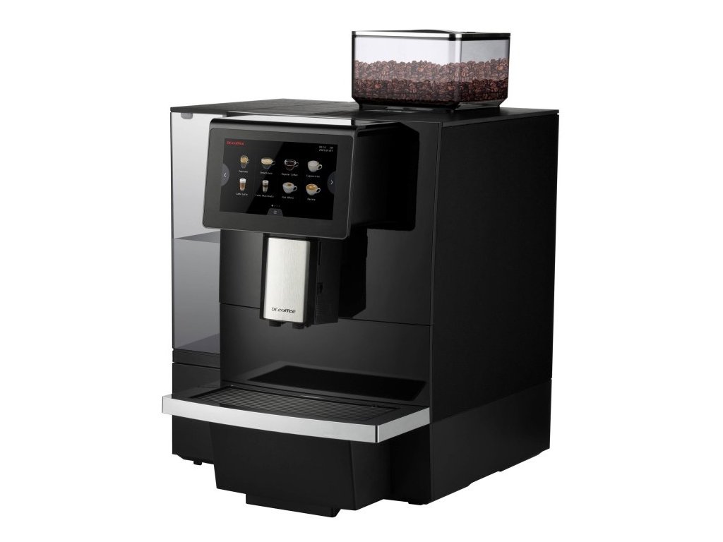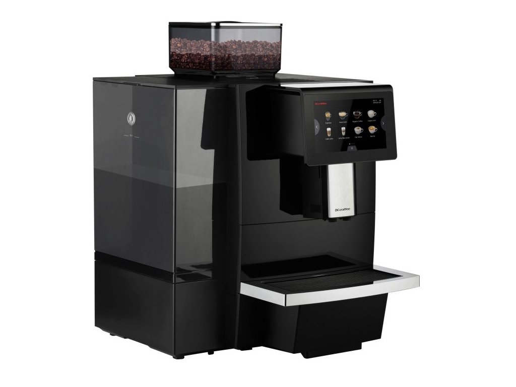 La Dr.Coffee F11 offre tout le nécessaire aux employés des bureaux de moyenne et grande taille. Son design compact et robuste s'harmonise parfaitement avec ses broyeurs en céramique et son groupe café à deux modes. La cafetière se place sur le plan de travail de la cuisine. Vous serez surpris par l'expérience exceptionnelle qu'elle vous offrira. L'appareil est doté d'un écran tactile de 7 pouces proposant jusqu'à 27 spécialités de café, le tout d'une simple pression sur un bouton. Mais sa simplicité d'utilisation n'est pas tout : la cafetière est également très facile à remplir grâce à son grand réservoir à grains d'une capacité de 1,2 kg. Le broyeur innovant est doté de deux lames plates en céramique qui broient parfaitement les grains de café en une poudre d'une finesse constante, libérant ainsi tous les arômes uniques de chaque café. L'appareil est équipé d'un grand réservoir d'eau de 8 litres et d'un raccordement à l'eau.