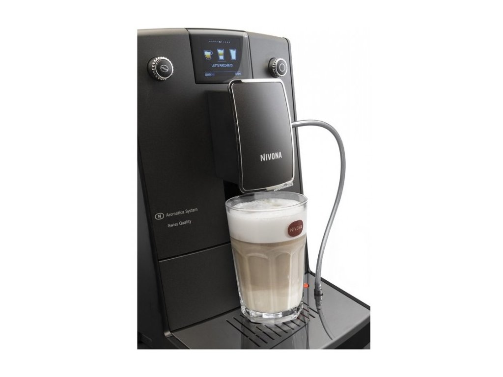 La cafetière NIVONA CafeRomatica NICR 758 est destinée aux amateurs d'espresso et de boissons lactées classiques, qui, grâce à la fonction One Touch, peuvent être préparées facilement d'une seule pression. La production de boissons lactées , comme le cappuccino ou le latte, est assurée grâce à une buse moussante auto-amorçante capable de produire non seulement de la vapeur, mais également de l'eau chaude. La buse est située directement dans la tête avec les buses à café, vous n'avez donc plus besoin de déplacer le verre ou la tasse. Il ne vous reste plus qu'à plonger le tube d'aspiration dans le lait et à sélectionner la boisson.