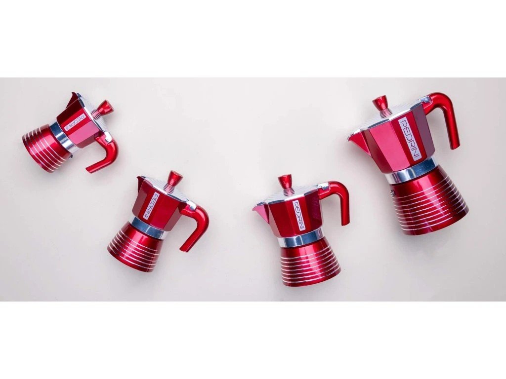 Infinity , de la marque italienne Pedrini, est une élégante cafetière moka en aluminium alimentaire haut de gamme . Sa surface est recouverte d' un vernis brillant résistant à la chaleur qui protège le matériau du ternissement et de la perte de qualité, même après une utilisation prolongée. D'élégants motifs circulaires sur le couvercle et le fond confèrent à la cafetière une touche qui éblouira non seulement vous, mais aussi tous vos invités.