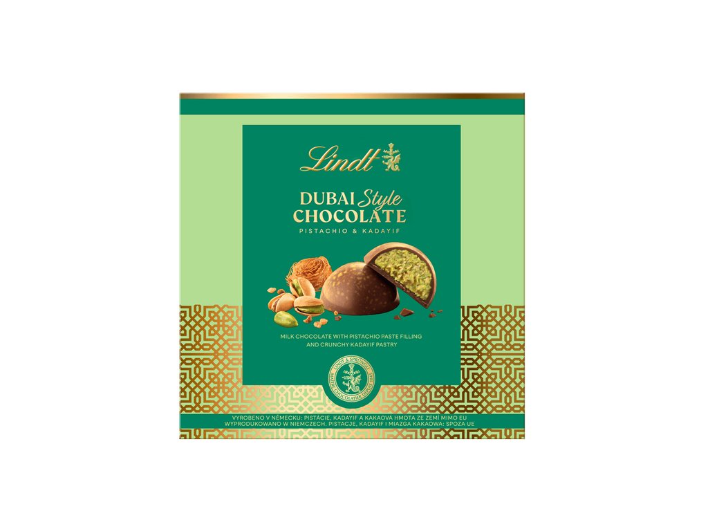 Pralines Lindt Dubai au chocolat au lait et à la pistache 90 g